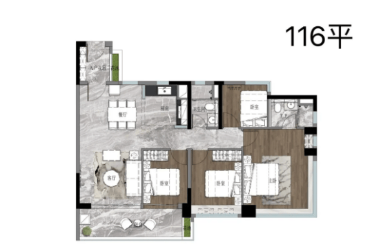 4. 116㎡四室两厅两卫(改善型首选):户型方正大气,南北通透,空间宽敞,动静分区明确,客厅、餐厅相连,活动空间充足,适合家庭聚会、日常休闲;四个房间布局合理,主卧套房设计,配备独立卫生间、衣帽间、飘窗,私密性强,居住舒适度拉满;三个次卧大小适中,可作为儿童房、老人房、书房,满足改善型家庭的多元化需求;阳台宽敞,景观视野好,可欣赏小区园林景观;厨房U型设计,操作空间充足,双卫生间设计,干湿分离,干净卫生,整体户型实用性与舒适性兼具,适合改善型买家,总价约480-550万。
