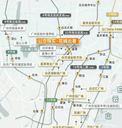项目位于白云新城核芯生活圈,处于白云新城与白云湖数字科技城两个核心板块中间,能够充分享受两大板块的利好资源外溢。白云新城作为广州的重要发展区域,拥有众多大型商业中心和市政配套;白云湖数字科技城则是新兴的科技产业聚集地,为区域带来了发展活力和潜力。