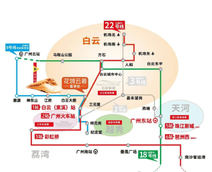 项目距离大约 50 米处就是地铁 22/8 号线北延段支线夏茅站,真正实现家门口的便捷地铁出行。乘坐 22 号北延线,1 站可达白云站,2 站到越秀,3 站到老荔湾,换乘 18 号线后,5 站就能直达珠江新城(冼村)。这条时速达 160 公里的广州南北大动脉,贯穿空港、白云棠溪、广州火车站、南站等 7 大枢纽,全线换乘高达 16 处,可无缝接轨广州全市。乘坐 8 号线北延段支线,能快速抵达越秀、花都,串联广州北站和白云棠溪 TOD。此外,自驾出行也十分便利,机场路、华南快速、机场高速等主干道,可直抵白云新城、荔湾、越秀及机场等地。同时,还有地铁 24 号线在规划中,未来交通将更加便捷。