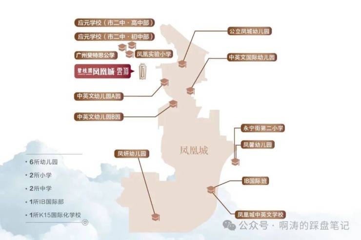 碧桂园凤凰城・云顶云玥阁周边教育资源丰富,汇聚从幼儿园到高中的 12 所优质学校,涵盖公立、私立、国际化等多种教育类型,形成全龄段教育体系,业主子女可实现家门口就学,目送孩子成长,是教育导向型购房群体的优选之作。