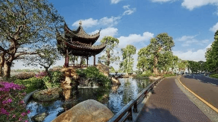 项目园林设计以“山水园居”为核心理念,打造约1万平方米私属岛尖百花园,汇集30余种珍稀树种,通过精心布局形成层次丰富的景观体系。园区内设置24处景观节点,使步移景异成为日常生活体验的一部分。通过古木移植与精细养护,营造出成熟而富有韵味的园林氛围。