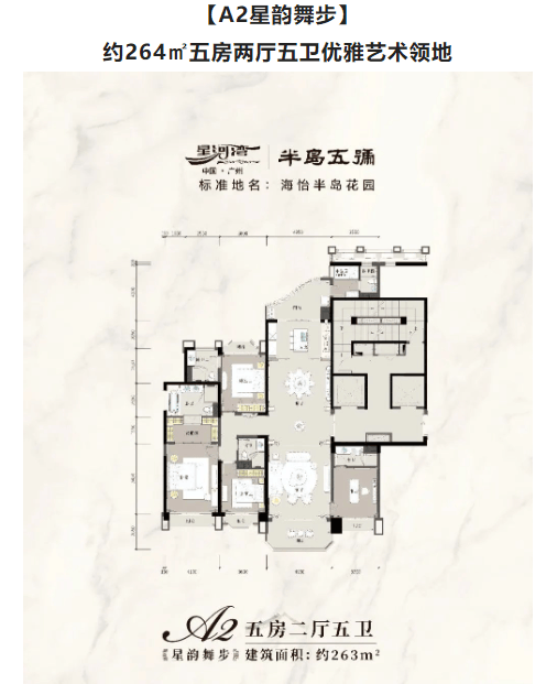 星河湾半岛五号主力户型为236平方米、263平方米及317平方米大平层,同时涵盖更高端面积段产品,满足不同层次改善需求。所有户型均采用四开间朝南设计,确保室内采光充足,空间通透性优越。