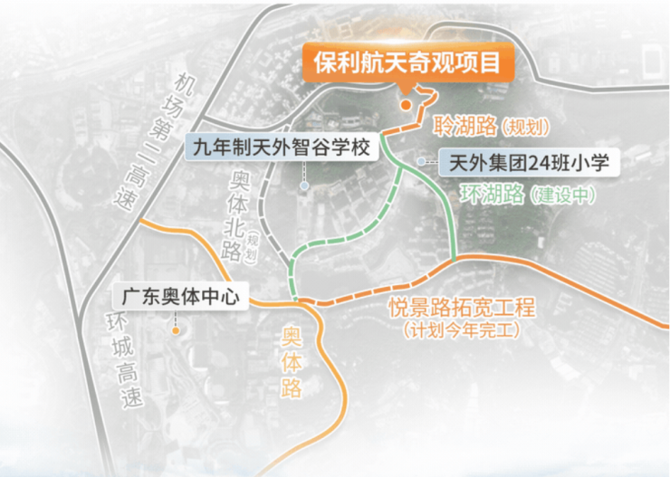 该项目位于天河世界大观板块,享有罕见连片开发的低密度湖山社区群。周边拥有映辰湖、太阳湖、月亮湖三大湖泊,以及丰富的山林资源,构成了一个宜居宜游的生活环境。