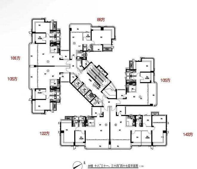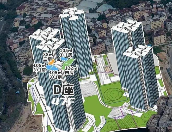 二期共规划 6 栋楼,41 - 47 层高,蝶形楼 + 围合式布局,比起一期,绿化面积更集中,楼间距更宽,住着更舒服,视野也不遮挡。除 1 栋 3 梯 5 户,其余 5 栋都是 3 梯 6 户。首推 D 座,47 层,3 梯 6 户,2026 年底收楼。有 6 个户型,88 平朝西北,2 个 105 平朝西南,122 平和 143 平朝东南,还有一个 105 平朝东北,所有户型层高都是 3.05 米。