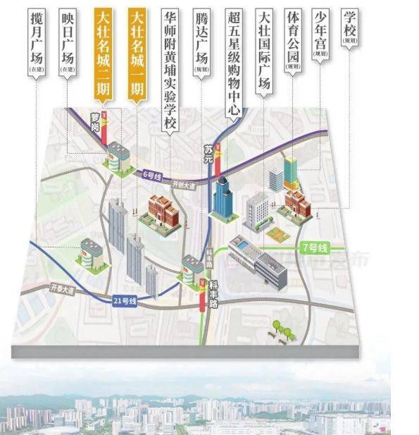 交通方面,大壮名城简直绝了!家门口就有已开通的 6 号线、21 号线苏元站,还有新开通的 7 号线二期。在售的二期离这三条线路站点都不远。像 6 号线暹岗站,步行大概 800 米左右,6 号线能从香雪一路经过黄埔、天河北燕塘、区庄、北京路、黄沙到浔峰岗。7 号线科丰路站,步行约 900 米,它全程经过科学城、老黄埔、大学城、万博 CBD、广州南站、陈村、北滘。6/21 号线苏元站稍远点,步行约 1.8 公里,但也还好啦。这几条线路基本覆盖广州核心区域,能一线直达天河、荔湾、越秀,联通各大重点板块和商圈。在科学城甚至整个广州,三线交汇的地铁大盘都少见,而且这些都已经实实在在能用了,不像有些项目还在规划阶段,大壮名城这交通优势,简直 “躺赢” 啊!