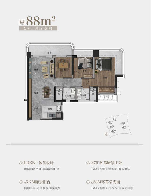 这些户型都有宽约 1.5 米、长约 5.5 - 6.4 米不等的长阳台,还有 L 形 270° 视角大飘窗,户户都有,而且互不遮挡,这在很多楼盘可做不到。就说最小的 88 平户型,都有 5.7 米大阳台和 5 米左右 L 形大飘窗。有人觉得 88 平户型书房小,其实看看尺寸,纵深约 2.5 米,宽约 2.1 米,当儿童房的话,靠左侧墙放 1.2 米床,阳台一端还能设计书桌和吊柜,还有 0.9 米宽过道,也不显得挤。而且二期 3 梯 6 户,每户都做到 4 开间同一朝向,像 105 平、122 平、143 平 4 开间朝南,朝南房间占比高达 90%。交标也提升了,大门是双面门,质感好,每个户型都带全屋中央空调,用的还是国内外高端家装品牌。以前被诟病的外立面也改了,融入 “云山珠水” 人文理念,用玻璃幕墙、铝板和香槟金线条,打造公建化立面,270° 转角玻璃延伸视野,妥妥的 “科学城汇悦台” 感觉。