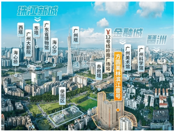 方圆・美林・滨江壹号是方圆与美林联合开发的新市头村旧改项目,落位海珠广州塔 - 琶洲 CBD 核心片区,紧邻广州塔仅 700 米,是广州新中轴上的稀缺改善型社区。项目以 “高层望珠江与广州塔、12 号线岭南广场站(规划)、3/8 号线客村站 300 米、广州塔商圈成熟配套” 为核心优势,93-132㎡三至四房户型采用新中式设计,搭配 6000㎡中心园林,目前降价在售,成为追求地标景观与主城便利的高净值人群优选。