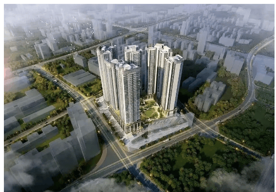 项目由方圆地产(擅长新中式产品)与美林集团(深耕华南的实力房企)联合开发,属新市头村旧改范畴,总占地面积约 2.67 万㎡,总建筑面积 15.59 万㎡,规划 4 栋 34-39 层高层住宅(含 3 栋安置房、1 栋政府安置房,仅 2 栋商品房对外销售),共 280 户,容积率虽未明确标注,但通过 “30 度楼体扭转” 设计,实现宽楼间距与优采光。绿化率约 35%,打造 “全林下生活荟” 中心园林(含 8 重景观节点),建筑采用 “高山流水” 线条 + 灰白高定立面 + 2.9 米巨幕玻璃,新中式美学与广州塔景观呼应。物业服务未明确提及,但依托方圆与美林的管理经验,保障居住品质;车位配置满足日常需求,适配高端家庭停车需求。