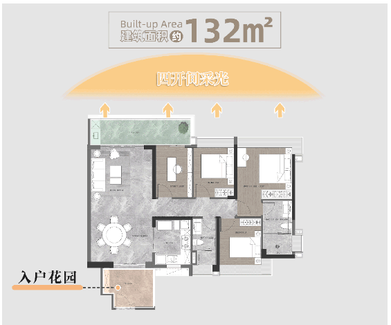 项目在售 93-132㎡三至四房,均为商品房户型,采用新中式设计理念,注重空间实用性与景观视野:93㎡三房为刚需改善户型,南向布局,部分中高楼层可享广州塔景观,主卧带飘窗,适合三口之家;132㎡四房为高端改善户型,LDK 一体化公区宽敞,主卧套房带独立卫浴与衣帽间,高层户型可远眺珠江与广州塔,满足多代同堂需求。社区配套注重全龄体验,6000㎡中心园林打造 “华府盈门、穿林入海” 等 8 重景观,配备下沉式庭院绿谷、儿童活动区、长者休闲区等,同时小区内有 1.5 万㎡景观面积,在主城核心区实属稀缺;楼下即市政公园与赤岗塔,日常休闲与人文体验兼具。