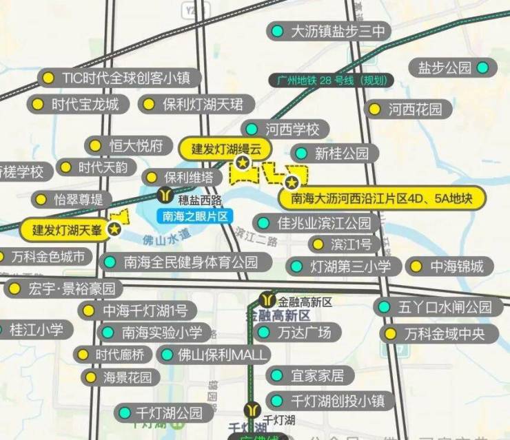 佛山地铁 28 号线(穗深城际):奇槎站距项目约 1.2km,2 站直达广州白鹅潭,6 站直达琶洲,无缝衔接广州核心商圈,未来广佛通勤仅需半小时。