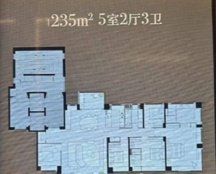 235㎡五房两厅三卫:五开间朝南,23 米极景面宽,约 70㎡LDKB 一体化社交方厅,可容纳 20 人私宴;270° 环幕阳台,揽江城湖园四重景观;双主卧套房设计,全明房无暗角,空间尺度奢华。
