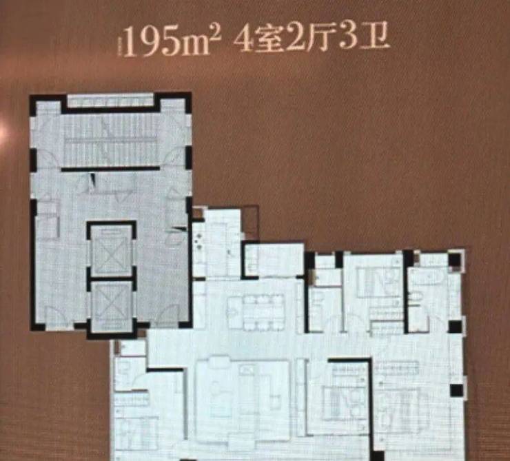 195㎡四房两厅三卫:17 米南向瞰江面宽,约 60㎡LDKB 一体化方厅;270° 寰江主卧套房,所有次卧均可看江;四开间朝南,南北双阳台,双主卧套房,得房率 86%,空间利用率极高。