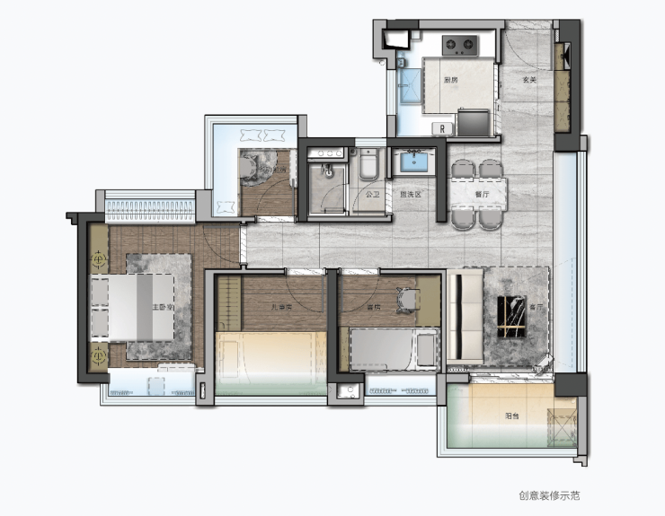 极致户型:73㎡四房超高使用率,明星产品,小户型大空间,满足刚需家庭需求