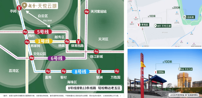 项目距离地铁8号线亭岗站步行距离仅100米,属于真正的地铁口物业,出行便捷度有明确数据支撑。8号线作为广州地铁换乘线路,串联荔湾、海珠、琶洲等核心板块,设有8个换乘站,可无缝接驳1号线、2号线、3号线及广佛线,无论是日常通勤主城商圈,还是跨区出行,都能依托地铁快速抵达,有效规避地面交通拥堵问题。