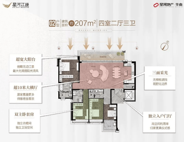 207平方米四房:该户型距离江边仅90米左右,拥有绝佳的江景视野,是项目主推户型之一。