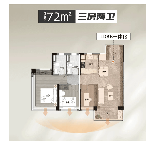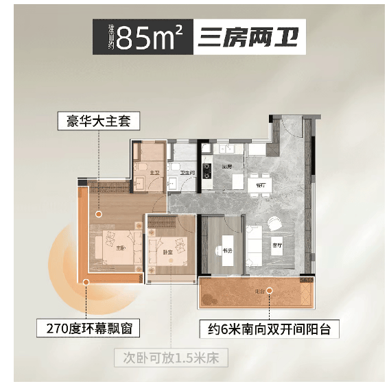 项目主力户型72-152㎡,全部采用超新规设计,使用率突破120%,实现“小面积大功能”。72㎡做到三房两卫、全南向四开间,为天河罕见;85㎡配备6米大阳台;105㎡实现南北通透四房;152㎡则配置一梯一户、双南向套房、9米滨水阳台,媲美传统200㎡大平层。全系层高3.15-3.3米,远超市场平均水平,搭配270°转角全面屏、LDKB一体化公区、独立电梯厅等设计,空间感与奢适度兼备。在新规日益收紧的背景下,【珠江·天河都荟】以极致产品力,重新定义天河改善型住宅的价值标杆,成为刚需上车与品质升级的理想之选。
