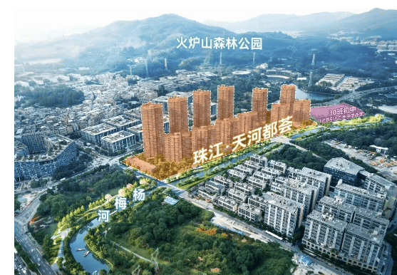 项目3公里范围内生活配套高度成熟且多元。商业方面,步行约300米即达智慧城最大商业体——广百广场,周边还有美林M·LIVE天地、万达广场等大型综合体,满足日常购物、餐饮与娱乐需求。生态资源尤为突出:东倚火炉山森林公园,西望杨梅河滨水绿带,北接天河湿地公园,形成“山-河-湖”环绕的天然氧吧。政府正推进杨梅河整治与碧道建设,未来将打造高品质都市滨水景观带。医疗、文体等配套亦逐步完善,整体生活氛围兼具现代便利与自然静谧。