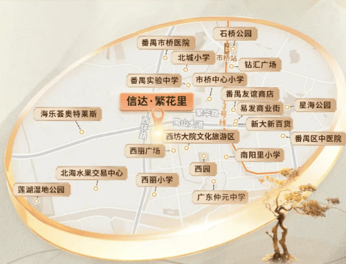 信达·繁花里地处广州城市核心中轴线上,是继珠江新城后的重要经济文化高地之一。市桥不仅拥有浓厚的广府文化底蕴,还汇聚了区政府、政务中心等多个重要的行政机构及文化地标。此外,随着周边基础设施的不断完善和升级,信达·繁花里的区位优势愈发明显,未来发展前景广阔。