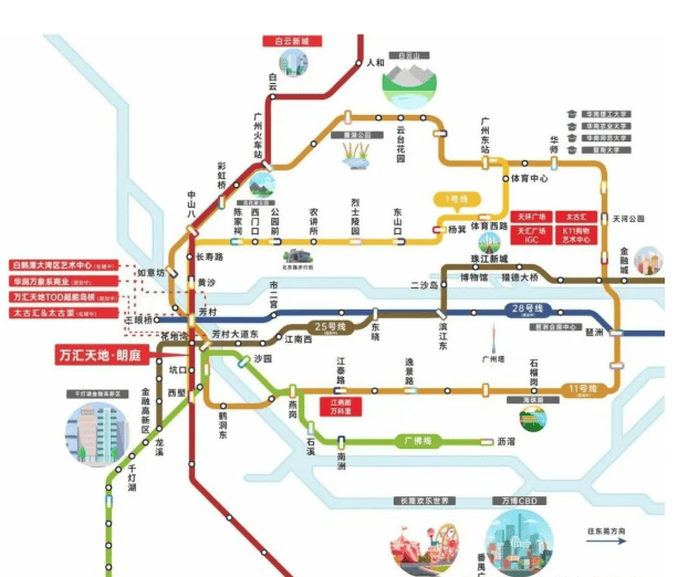 交通是衡量现代人居价值的关键指标。万汇天地·朗庭所在的花地湾TOD超链中心(规划中),未来将实现1号线、25号线(规划)双地铁交汇,并接入多达15条城市及城际轨道线路。这意味着,从项目出发,30分钟内可直达珠江新城、琶洲、佛山千灯湖等核心商务区。目前,1号线芳村站距离项目约1.2公里,步行或骑行即可抵达;未来TOD建成后,将实现无风雨连廊直通地铁口、商业体与办公区,真正实现“站城一体”。对于依赖公共交通的上班族或跨城通勤族而言,这样的交通配置极具吸引力。