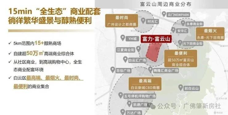 项目商业配套规划超 50 万平方米商业综合体,分为 5 大商业组团,涵盖高端购物中心、主题商业街、精品酒店、总部办公等多元业态,打造白云新城北部商业中心。商业综合体将引入国际一线品牌、高端餐饮、亲子体验、休闲娱乐等丰富业态,满足业主一站式消费需求。项目周边 3 公里范围内拥有成熟商业配套,与白云新城核心商圈形成互补,15 分钟可达白云万达广场、凯德广场等商业地标,畅享时尚都会生活。