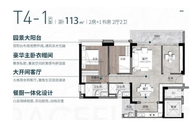 113㎡两房+1书房两厅两卫