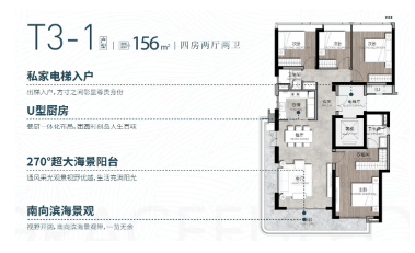 丰富户型选择:建面约113-203㎡三至四房舒适精装户型,适应不同的居住需求。