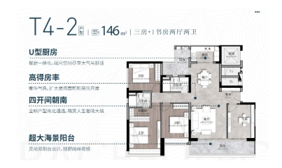 146㎡三房+1书房两厅两卫
