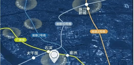 地铁出行:项目周边三地铁环绕,交通便捷度极高。距离广州2号线、广佛线交汇的南洲站仅850米,步行约10分钟即可抵达,乘坐2号线可直达广州火车站、北京路商圈,广佛线可快速通达佛山南海区;距离广佛线石溪站约1100米,步行约12分钟,便捷换乘多条地铁线路;距离在建中的广州10号线大干围站仅500米,预计未来开通后,将进一步提升出行效率,直达天河、越秀等区域,通勤更便捷。