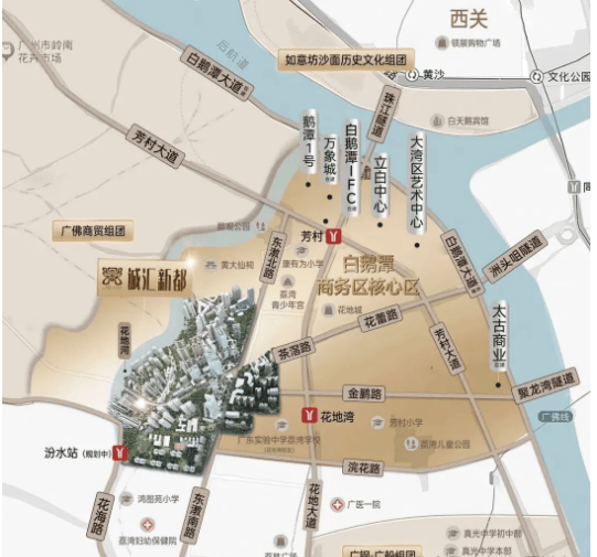 诚汇新都·榕诚湾的区位优势得天独厚,地处荔湾花地河以西,广州香料厂以南地段,西邻芳村花地河,东邻汾水花园和真光中学,北侧紧邻茶滘路高架桥,处于白鹅潭商务区与佛山的衔接地带,直线距离佛山界面仅1.2公里,轻松享受双城生活资源。