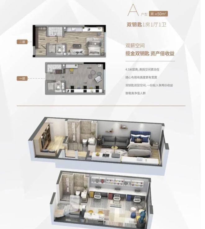 项目主推 33 - 58㎡复式 LOFT,以稀缺的住宅式 LOFT 设计脱颖而出。4.5 米层高的复式结构,为空间利用提供更多可能,增加了居住的层次感与趣味性。部分户型如 58㎡三房,不仅可使用明火,还带有生活阳台,满足日常生活的多样需求。双环通走廊设计有效提升通风采光效果,并且户户单边布局,避免对视,保障了业主的私密性。虽未明确提及得房率,但从整体空间设计来看,注重空间的高效利用,致力于为业主打造舒适且实用的居住空间。