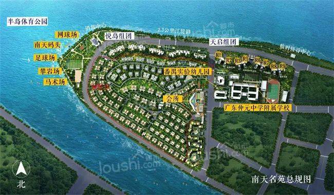 南天名苑位于广州市番禺区洛溪岛,是霍英东集团在广州精心打造的高端住宅项目。该项目占地面积达800亩(约53万平方米),总建筑面积为52.8万平方米,拥有极低的容积率1.06,提供了大约1200户住宅单位。项目的绿化设计与自然景观完美融合,旨在为居民提供一个舒适、宁静的生活环境。