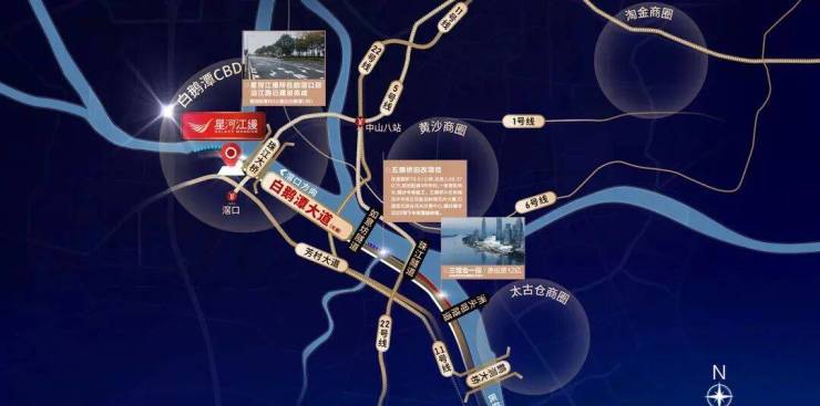 星河江缦拥有 “一路二桥三隧道” 的立体快捷交通路网,交通通达性覆盖全城核心区域: