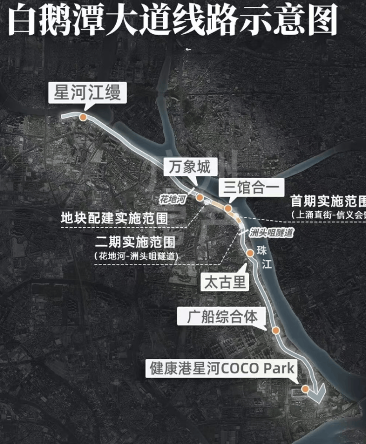 自驾:通过芳村大道5分钟上内环,15分钟直达白鹅潭CBD核心区。