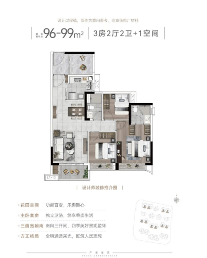 由两大实力国企联合打造,品质有保障。项目户型产品不错,选择性多,三开间朝南,使用率达 9 成以上。周边几个成熟小区使得配套较为完善,城市界面整洁,前身广氮化肥厂地块周边基本无城中村,相比其他项目更具优势。