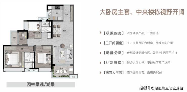 3. 140㎡终极改善四房:双主套+270°湖景视野