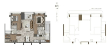 低区为 4-11 层,采用2 梯 8 户设计,主力户型是 107-123㎡的三房。这个面积段刚好契合刚需改善家庭的需求,紧凑的户型布局能最大化利用空间,无论是三口之家还是三代同堂,都能满足日常居住所需。