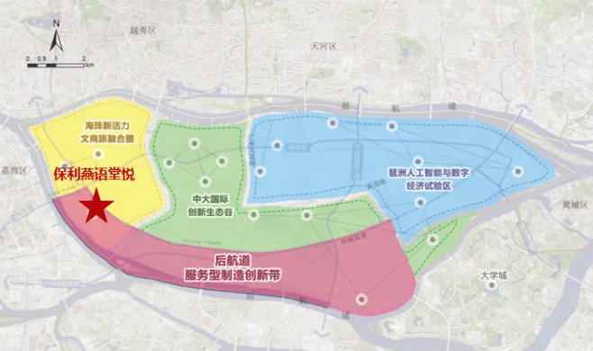 休闲娱乐方面也不缺,步行可达约 700m 的海珠免费庄头公园、约 1.2km 的珠江后航道;900 米处有 3.6 万方广纸历史公园、滨江公园,1.6 公里处是广州志愿者公园,700 米处还有燕子岗体育场。开车 22 分钟能到珠江新城,20 - 25 分钟能到琶洲,还能畅联广州塔、太古仓、黄埔古港、琶醍等片区景点,尽享滨江、美食、景点及人文精粹。而且保利很舍得,拿出 1/3 的土地打造了海珠首个新中式园林,以后还会以《梁园飞雪图》为蓝本,植入曲水飞虹、万倾涵碧、松间、观澜、林隐等景观组团,东方意韵满满。