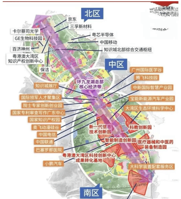 中新知识城是粤港澳大湾区唯一的中国-新加坡国家级合作项目,地处湾区顶部,被称为“湾顶明珠”。作为国际科技创新中心的重要引擎,这里致力于打造具有全球影响力的国家知识中心,并承担多项重要国家使命。历经多年发展,中新知识城已扩展至232平方公里,吸引了大量高新技术企业入驻,形成了强大的产业集群效应。