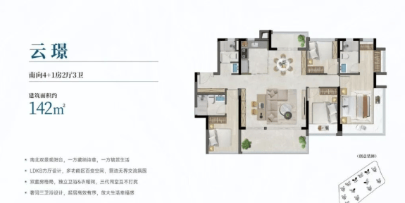 广开云翰推出的户型面积范围广泛,从76平方米到142平方米,涵盖三至五房设计,户户全南向,享受大面宽和三至五开间采光。这些户型实用率均超过100%,最高可达约115%。这样的设计不仅提高了居住舒适度,也提升了房屋的投资价值。