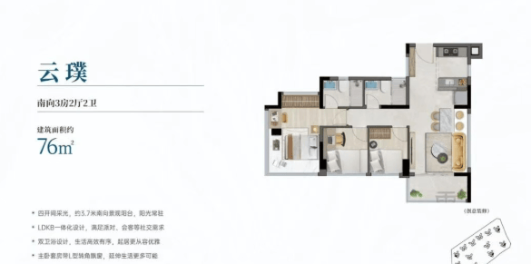 广开云翰位于广州市黄埔区中新知识城,是2023年10月由广开控股联合体以地价165340万元购得的地块,楼面价为11239元/平方米。该项目总建筑面积约23.1万平方米,容积率为2.5,规划有13栋全南向住宅,户型面积从76至142平方米不等,是一个低密度、高品质的人文住区。