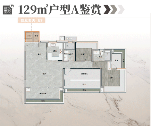 5. 建面约129㎡四房:高区改善户型,位于项目高区,视野开阔,能够俯瞰社区及周边风景,四房布局,空间宽敞阔绰,户型设计科学合理,兼顾实用性与舒适度,适合追求高品质居住体验的改善群体。