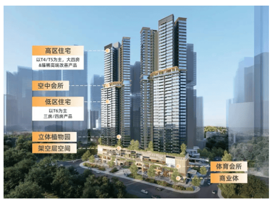 【在售楼栋】:项目首开3栋住宅,后续加推6栋,所有在售楼栋均采用高低分区设计,低区(4-28层)与高区(30-44层)分开管理,保障业主的出行便捷性与居住私密性。其中,低区为2梯6户布局,主要面向刚需群体;高区为2梯5户布局,主要面向刚改与改善群体,满足不同群体的居住需求。