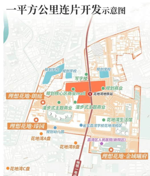 在区域商业配套方面,项目1公里范围内汇聚了三大潮奢商业坐标,分别是全国首座双太古(在建中)、26.9万㎡华润万象城(在建中)、理想花地18万㎡城市级购物中心(规划中)。这三大商业体建成后,将形成世界级商圈,涵盖高端购物、餐饮娱乐、休闲体验等多元业态,媲美天河路商圈,让业主在家门口就能享受高端消费体验,提升生活品质。