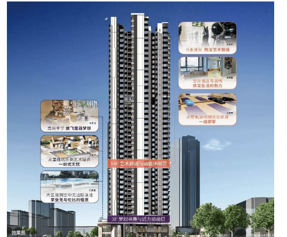 商业方面:尽管新福港鼎峰江畔体量不大,但开发商在有限的空间内精心打造了一系列高品质的生活配套设施。项目内部设有空中泳池、艺术书吧、童话乐园、运动天地等多种主题空间,满足不同年龄段业主的需求。同时,小区周边底商成熟,711便利店、生活超市、百果园等一应俱全,基本生活需求可以得到充分满足。