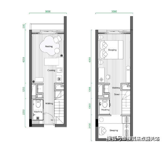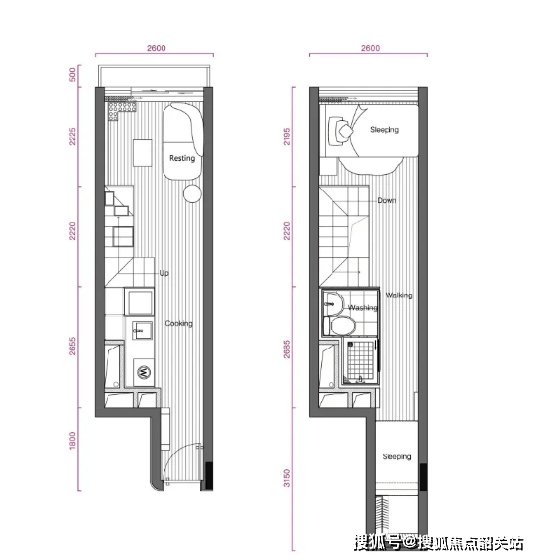 30㎡双钥匙户型:该户型最大的优势是一屋两用,可实现多样化投资模式,提高投资收益,也可满足两代人同住且互不干扰的需求;上下两层均配备客厅、厨房、卫浴,独立双套房设计,每层都能实现独立居住,私密性极强;各种功能区可随心打造,空间自由布置,既能作为两套独立房源出租,也能一套自住、一套出租,灵活适配多种需求;大开间工作室设计,轻松自由,适合创意从业者作为办公、居住一体的空间。