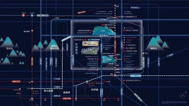 作为中国与新加坡双边合作的国家级项目,中新广州知识城目前已聚集超3700家跨国企业,总产值超5500亿元。知识大厦、知识城广场、知识塔、独角兽总部集群等地标建设如火如荼。未来的九龙湖,更将成为广州下一个高端总部经济CBD。