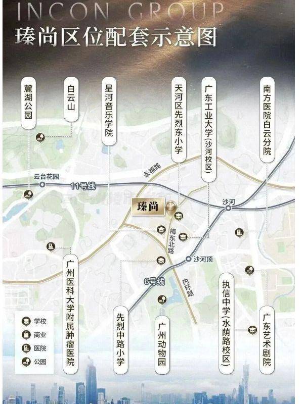 伍:成熟的商圈与自然的碰撞商业配套方面,20 分钟内可抵达环市东、珠江新城、北京路、白云新城等主轴商圈,周边太古汇、万菱汇、正佳广场等大型综合商业环伺,满足多元消费需求。内部约 3800 方园林由日本设计师小林政彦操刀,日式凉亭、流水瀑布、屋顶花园等元素,搭配多棵罗汉松,景观精致。项目还舍弃商业面积打造室内泳池、健身房、瑜伽房等设施,无边际泳池配备天然奢石背景墙,健身房建设标准高于常规,为业主提供尊贵惬意的健康生活。自然景观上,直线距离白云山仅约 1.3 公里,西、北面 8 楼以上无遮挡眺望云山,周边东风公园、动物园等众多公园环绕,可尽享自然之美,实现城市繁华与自然宁静的完美融合。