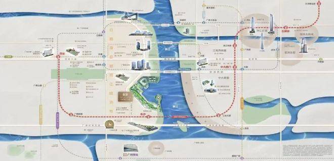 项目交通条件极为便利。距离在建的地铁 10 号线东沙站约 700 米,预计 2025 年底开通,届时 1 站可达对岸海珠西,4 站至中大,6 站抵滨江东,更可零换乘直达珠江新城,快速融入城市核心区域。1.3 公里处已开通的地铁 11 号线环线,进一步拓展出行范围。1 公里内分布着健康港总站、沙洛市场等公交站,提供多样化公共交通选择。同时,规划中的水上巴士及港湾码头(计划 3 年内完工)将增添独特出行方式。自驾方面,邻近白鹅潭大道,外通东沙石岗隧道,快速接驳环城高速、东新高速,畅行全城。