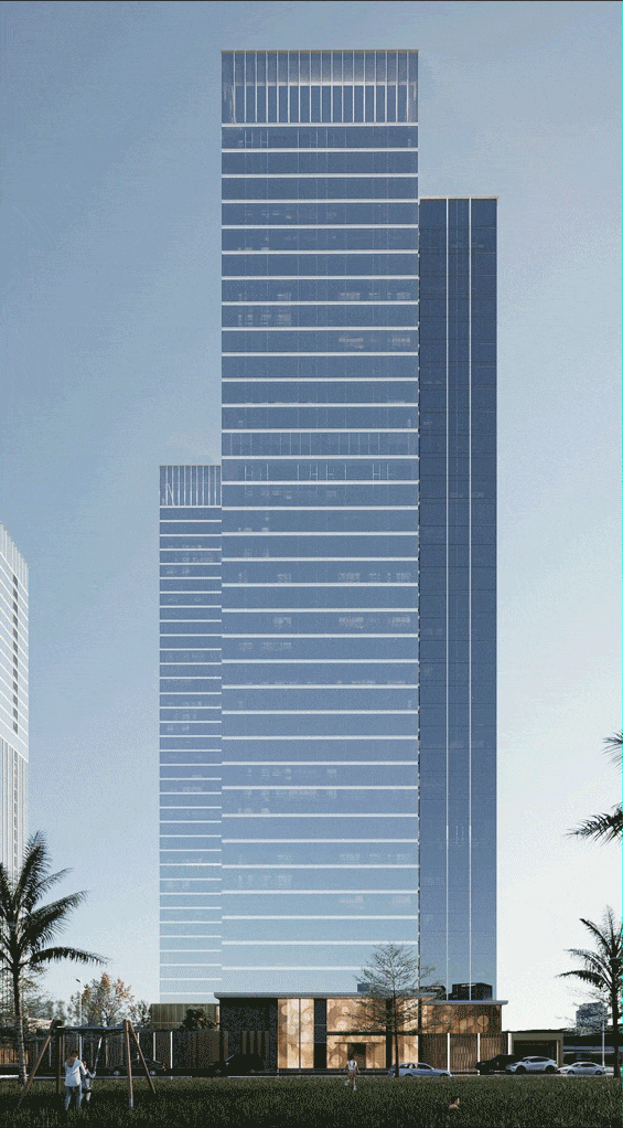 项目的设计理念紧扣“繁华与绿意共生”的核心,在珠金琶C位之上,打造出CBD中的城市绿洲。通过大尺度玻璃幕墙外立面设计,让建筑成为区域内极具辨识度的亮色ICON,阳光照耀下通透灵动,月光披拂时静谧雅致,实现建筑与自然、城市景观的无缝融合。同时,项目摒弃传统商办项目高梯户比的弊端,以2梯4户、3梯3户、3梯6户的合理布局,最大化提升居住的舒适性与私密性,甚至超越不少住宅盘的居住体验。