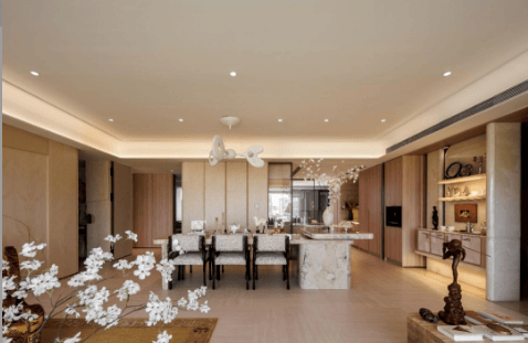 能建·天誉府示范区与样板间已正式全面开放,按照社区入口→中央园林→营销中心→样板间的标准参观动线,全方位呈现项目高端精奢质感与匠心细节。社区入口打造76米气派大门,搭配星辰水景与质感石材铺装,形成酒店式归家第一重礼序,入口两侧绿植对称排布,智能安防系统隐蔽式安装,兼顾美观与安全。步入示范区,中央园林景观尽收眼底,假日水庭的潮汐模拟水景与轻氧草坪相互映衬,生态草阶与多层次绿植营造出浓郁的森居氛围,340米有氧能量环蜿蜒其间,串联起全龄活动场地,每一处景观都经过精细打磨。营销中心内部采用现代简奢装修风格,空间开阔通透,江景主题装饰与项目气质高度契合,户型模型、规划展示、智慧体验等功能分区合理有序,洽谈区舒适雅致,为到访者提供优质的咨询环境。样板间严格按照项目主力户型1:1打造,装修围绕“江境栖心·简奢本真”理念,摒弃浮夸装饰,以材质与光影营造高端质感。室内采用温润影木与意大利木纹拼花地面,手工砖、编织挂毯等材质增添自然质感,无界玻璃全景舱将江景与自然光最大限度引入室内。全屋隐藏式智能系统、人性化收纳设计、低饱和度色调搭配,让空间简洁大气且实用性十足,壁炉、茶器等软装点缀,营造出静谧温馨的居住氛围。从社区入口的仪式感到园林的生态感,再到样板间的空间质感,每一处细节都彰显出项目的轻奢定位与匠心造诣,让到访者直观感受未来江境生活场景。